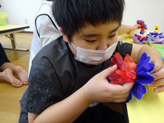お弁当チームと花束チームで分かれて作業。それぞれきちんと商品になるように意識して作れました!いろんな『お仕事』を経験したり知ったりすることができてどうだったかな。